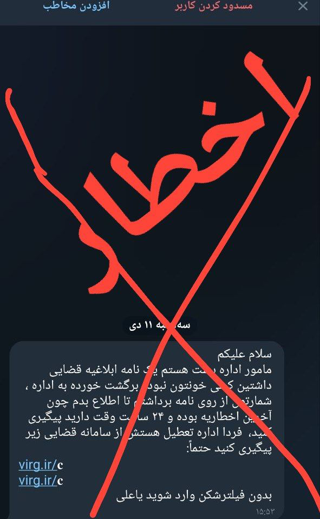 🔸 در هفتههای گذشته، برخی کاربران پیامهایی دریافت کردهاند که ادعا میکند «پستچی یا مأمور قضایی» هستند و لینکی برای مشاهده ابلاغیه و یا نرمافزاری جهت نصب برنامه، ارسال میکنند.