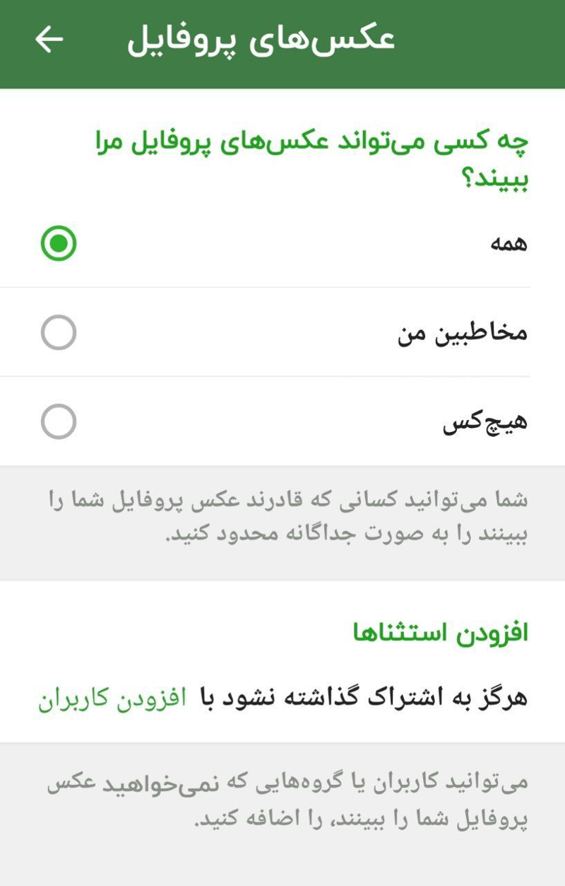 تنظیمات...حریم خصوصی وامنیت..عکس های پروفایل..