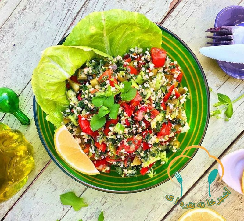 آب لیمو ترش ،روغن زیتون،نمک و فلفل به میزان لازم
