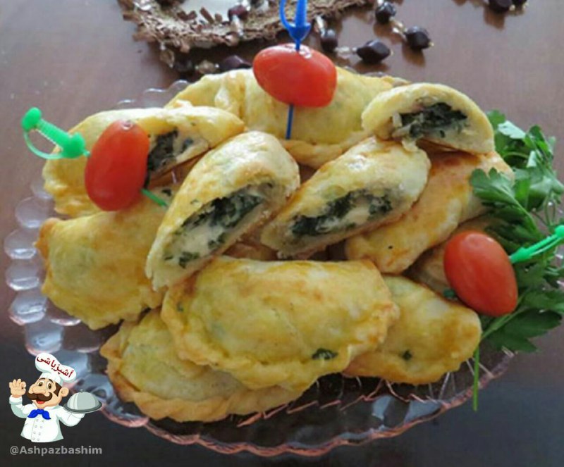 مواد داخل شیرینی:۳عدد سیب رنده شده ارو با ۲قاشق شکر و ۱قاشق دارچین و کمی کره تفت بدین و کنار بزارین تا سرد بشه.