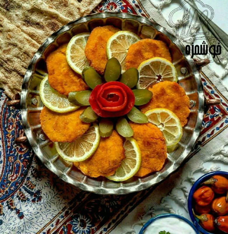 ۱۲ تا فیله مرغ ۲ تا سیب زمینی ۶ تا خیارشور سیب زمینی و فیله رو میپزیم و رنده ریز میکنیم خیار شور هم رنده ریز دو قاشق پنیر خامه ای ۱ قاشق سس مایونز و ادویه رو مخلوط مواد میکنیم مواد نباید شل باشه میزاریم یخچال تا خودشو بگیره بعد گرد میکنیم