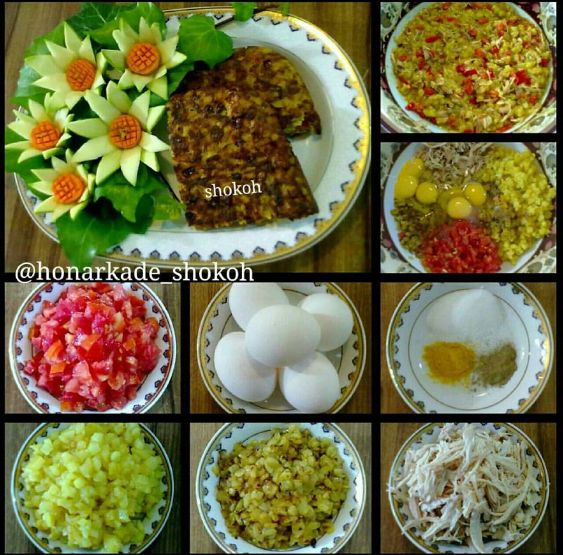 چند تا فیله مرغ ( از سینه مرغ هم میتونید استفاده کنید) را مکعبی برش زده با نمک فلفل زعفرون وکمی پودر پیازمزه دار کردم یکی دو ساعت گذاشتم بمونه بعد دوتا پیاز را خلالی شده را تفت داده طلایی شد مرغ وفلفل دلمه ای رنگی وقارچ ورقه شده را اضافه