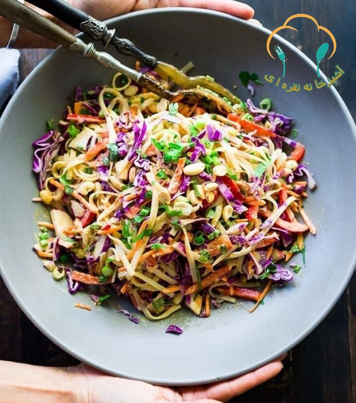یک لیوان کلم سفید+یک لیوان کلم بنفش +نصف لیوان ذرت کنسروی+نصف لیوان گوجه +نصف لیوان خیار خرد شده+دوعدد ساقه پیازچه خرد شده +فتوچینی پخته یک پیمانه + یک عدد هویج+ یک چهارم پیمانه بادام زمینی +یک چهارم لیوان مایونز کم چرب+دو قاشق ماست+ دو