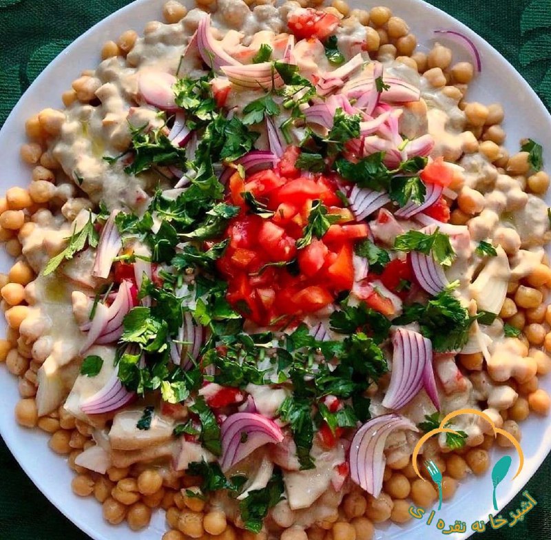 مواد سالاد داخل بشقاب ریخته روش جعفری و پیاز بریزید