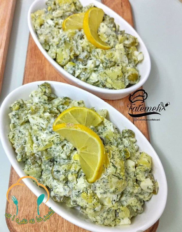 برای تهیه سالاد چهار تا سیب زمینی رو آب‌پز کردم ودرشت خرد کردم، سه تا تخم مرغ رو هم آب‌پز کردم و نگینی خرد کردم. حدود صد و پنجاه گرم خیار شور رو خرد کرده با مواد مخلوط کردم. حالا سه قاشق غذاخوری شوید خشک داشتم اونم ریختم. با