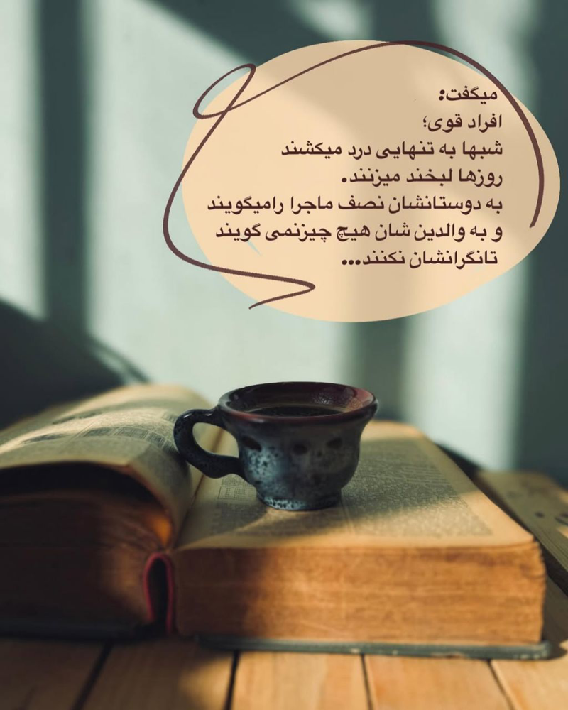 آدَمایِ قَوی دَردا رو دَرونِ خودِشون میریزَن چون نِمیخوان کَسی از دَرداشون ناراحَت بِشِه! زود از پا دَرمیان...