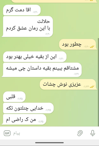 اروم باش قشنگم اینم نظر ایشون بود مرسی از این همه محبتتون ممبرای دوستداشتنی🦋✨️