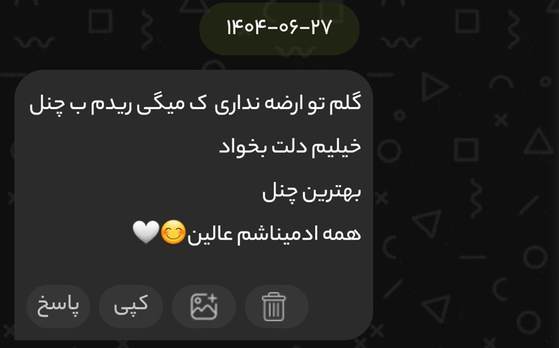 همه ادمینا دارن تلاششونو میکنن تا چنل خیلی خوب پیش بره