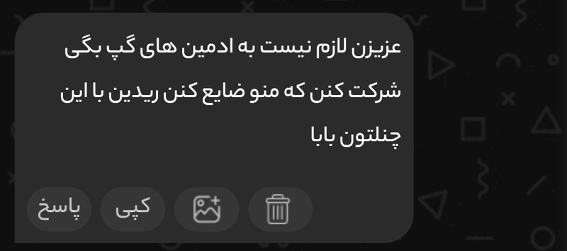 لطفا بی احترامی نکن ب چنل و ادمینای خیلی خوبش✨️