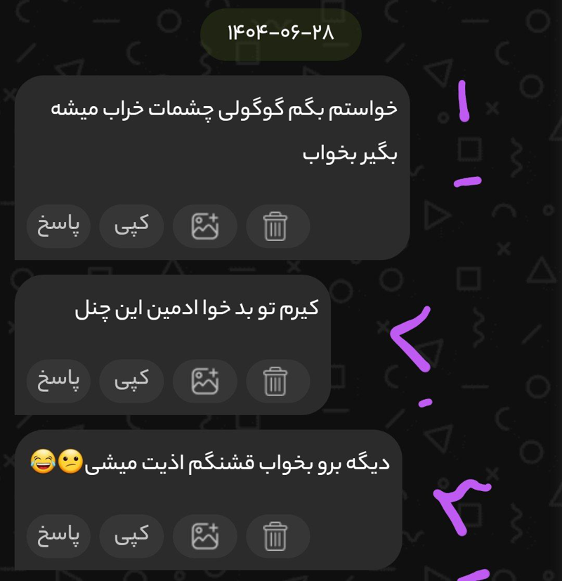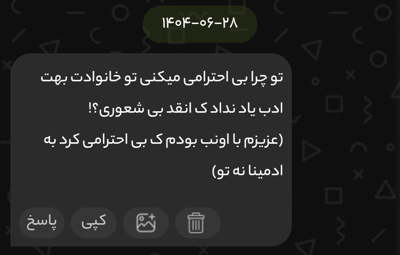 لطفا بی احترامی نکن ب چنل و ادمینای خیلی خوبش✨️