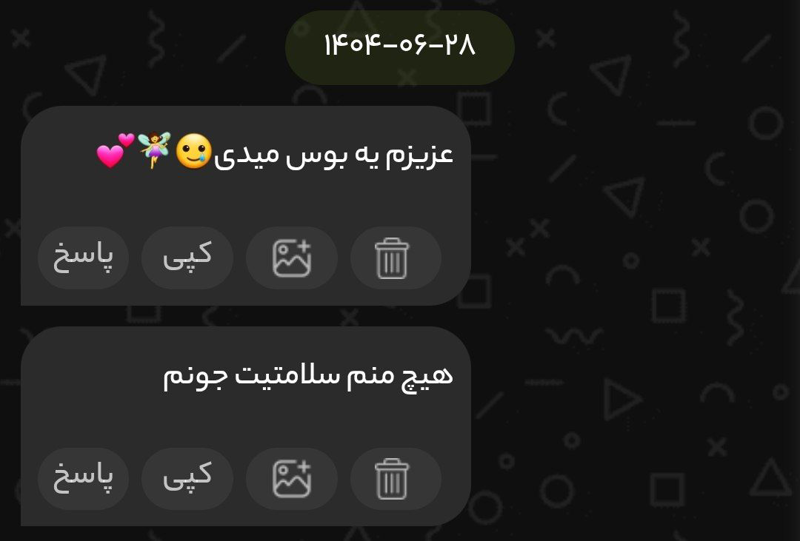 ۱-فداتشم مرسی فعلا که خواب ندارم قشنگم 🦋میخوام جواب پیامای زیباتونو بدم