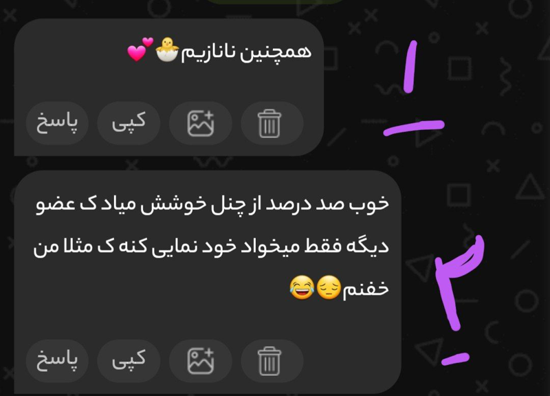 1- اره موافقم کلا شبا خواب ندارم فعلا فکر کنم نگهبان چنل شدم😂😂