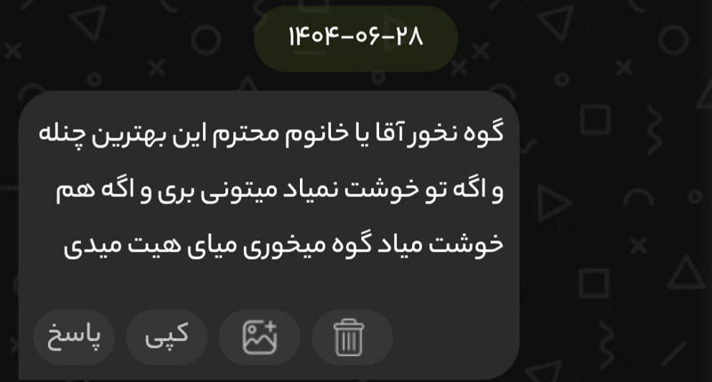 لطفا بی احترامی نکن ب چنل و ادمینای خیلی خوبش✨️