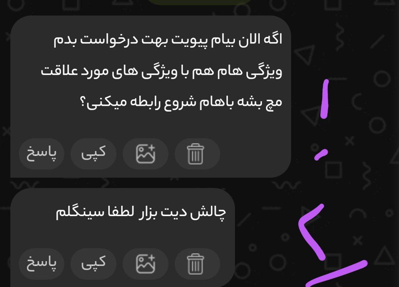 ۲- متوجه منظورت نشدم کامل قشنگم واضح تر میگی😂🦋