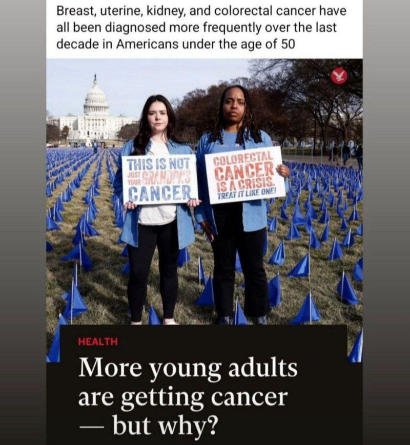 ♦️میزان وقوع سرطان، در افراد جوانتر هر روز داره بیشتر میشه. به عنوان مثال سرطانهای سینه و دستگاه گوارش و کلیه همیشه بالای ۵۰ سالهها رو تهدید میکرد، ولی الان ۵-۶ ساله که میزان ابتلا در بین افراد زیر ۵۰ سال خیلی بالا رفته