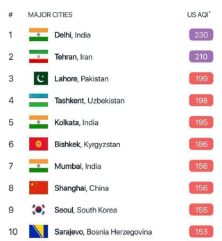 🔻تهران رتبه دوم آلودگی هوا در جهان!