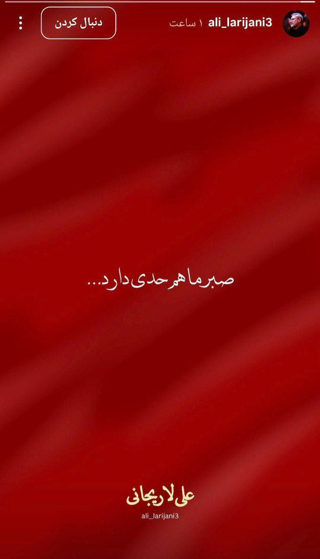 استوری علی لاریجانی: صبر ما هم حدی دارد...