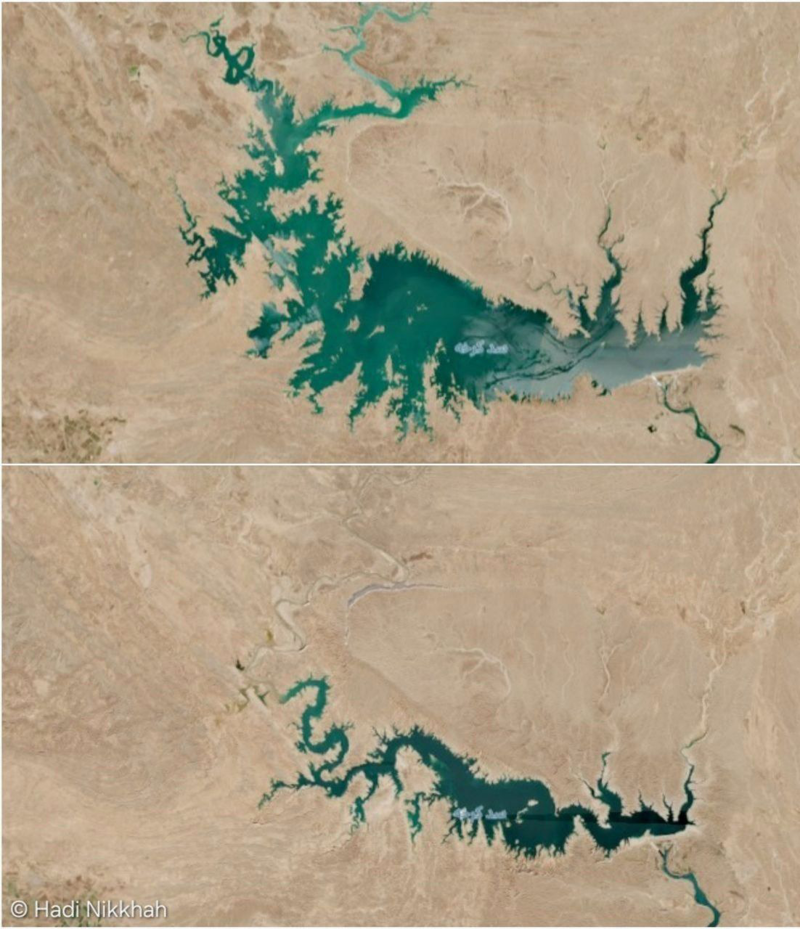 ♦️تصویر بالا سد کرخه بزرگترین سد ایران در وضعیت نرمال و پرآب، پایین سد کرخه الان