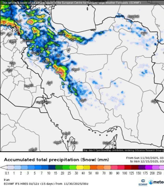 ♦️پیش بینی بارش برف تا ۲۳ آذر ماه