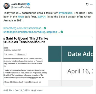 🔺ادعای بلومبرگ: نفتکشی که امروز آمریکا توقیف کرد در ناوگان سایه ایران بوده است