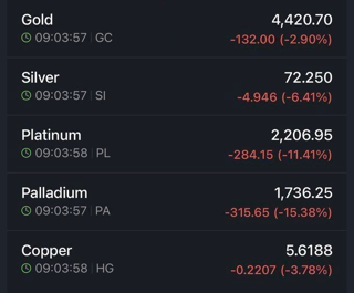 ♦️انس جهانی طلا، نقره و فلزات گرانبها سقوط کردند