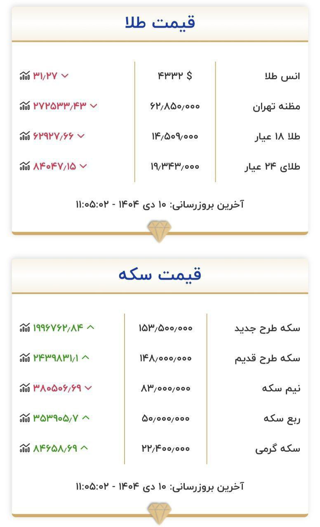 🔺️هم اکنون نرخ طلا و سکه
