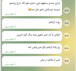 از تویی ک نمیتونی یه جمله رو درست بنویسی انتظار نمیره شعور و شخصیت و خانواده داشته باشی! الانم تو چنل دست و بالم دستس نمیتونم چیزی بگم ولی جرئتشو داری بیا پی. @deliiiiiiiiiiiiiiiiii