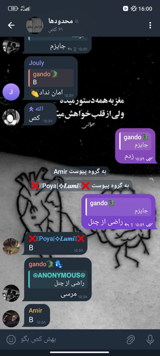 اقا من زحمت میکشم ک شما سرگرم بشید بعد که اینطوری میاید خراب میکنید هر کسی جایزه برد حقش بود نوش جونش گپ بستم که با پیام های قبلی قاطی نشه