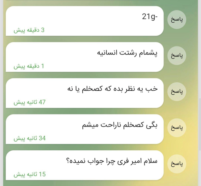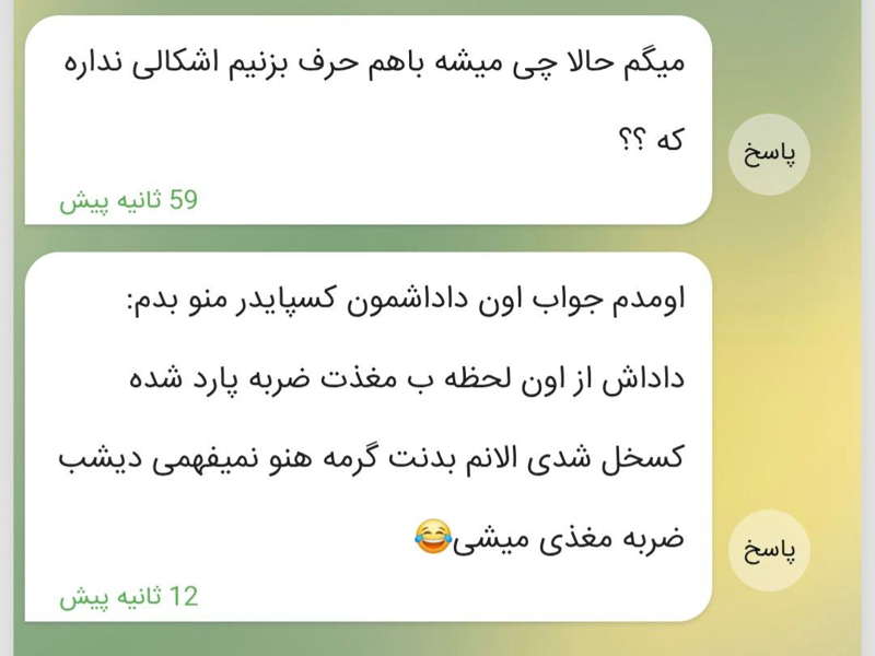 داشتم میخوندم پیامت اول که ناراحت شدم رسیدم به اخر😂😂😂😂