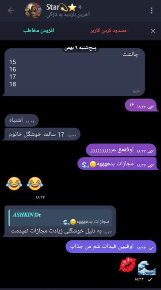 مجازات داد ولی من عاشق اینم که چیزای سم بزارم پروفایلم تازشم نمیتونم مجازات اولو بزارم😔