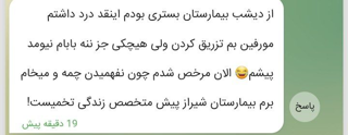 هیم کاری ازم برنمیاد ولی باید بگم کسی جز خونوادت بفکرت نی و امیدوارم زودتر خوب شی عیزم🙂❤️