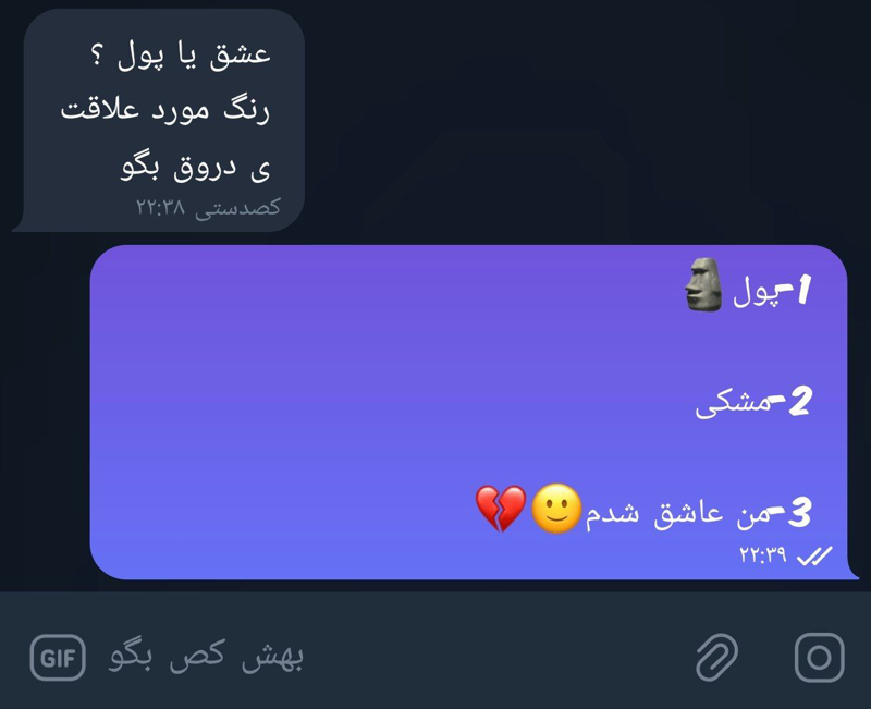 بفرستین پیوی حوابتونو بدم عمرامــ