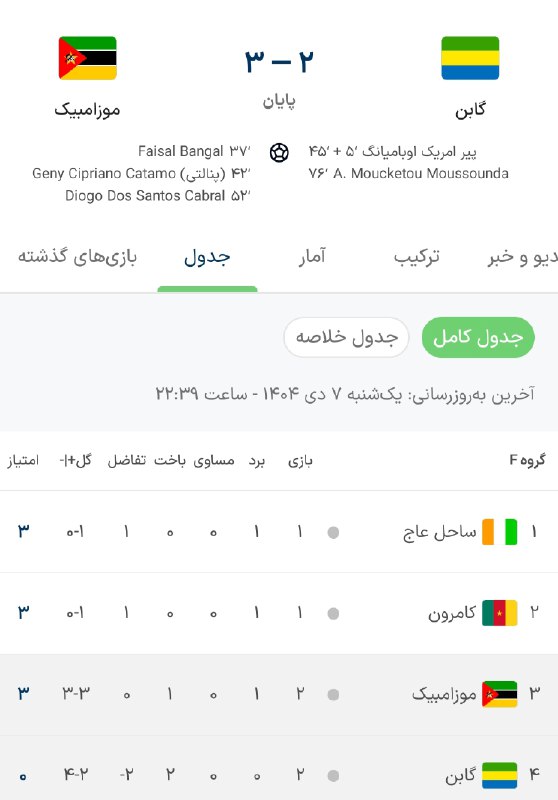 گابن با اندونگ در آستانه حذف از جام ملتهای آفریقا قرار داره