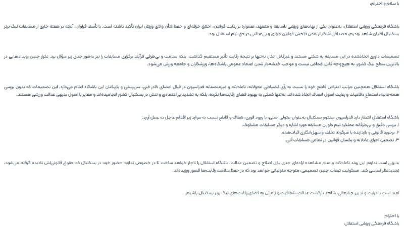 اعتراض باشگاه استقلال به داوری و احکام انضباطی در لیگ برتر بسکتبال