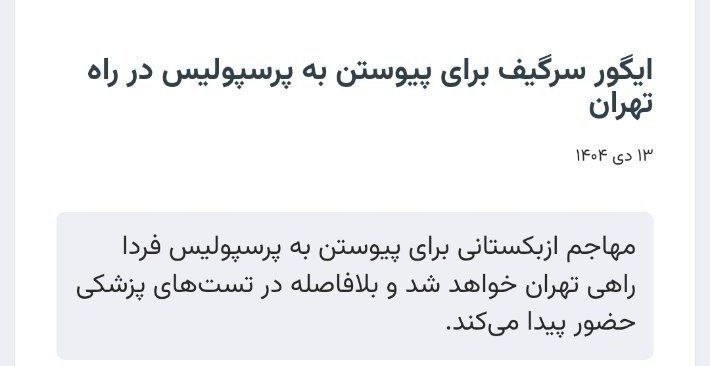 با اعلام سایت رسمی تیم حکومتی، ایگور سرگیف مهاجم ۲ میلیون دلاری و ۳۳ ساله فردا برای عقد قرارداد با پیروزی وارد ایران میشه.