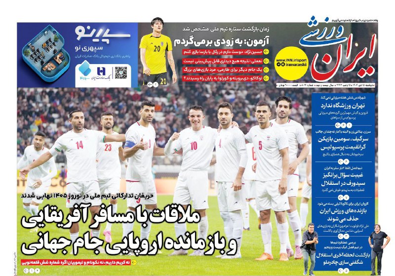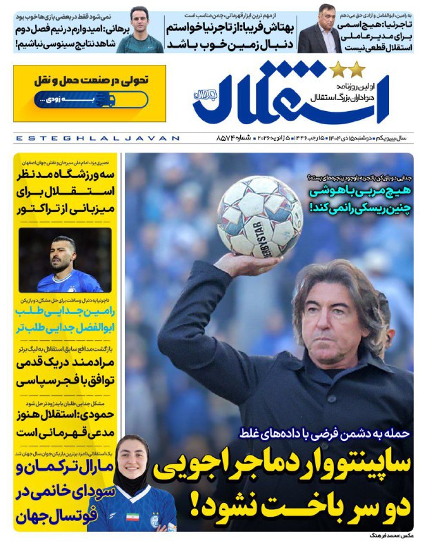 📰روزنامه های ورزشی 15 دی 1404