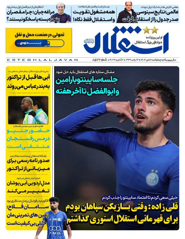 📰روزنامه های ورزشی 17 دی 1404
