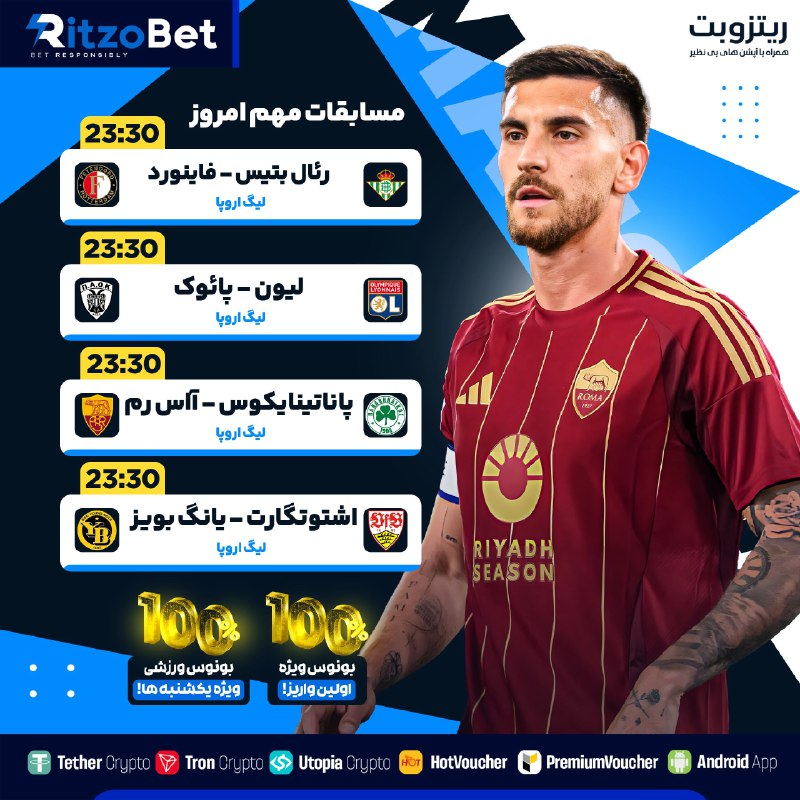 در سایت #ریتزوبت ثبت نام کنید و با اولین واریز تا سقف 10 میلیون تومان بونوس بگیرید 🔥🚀
