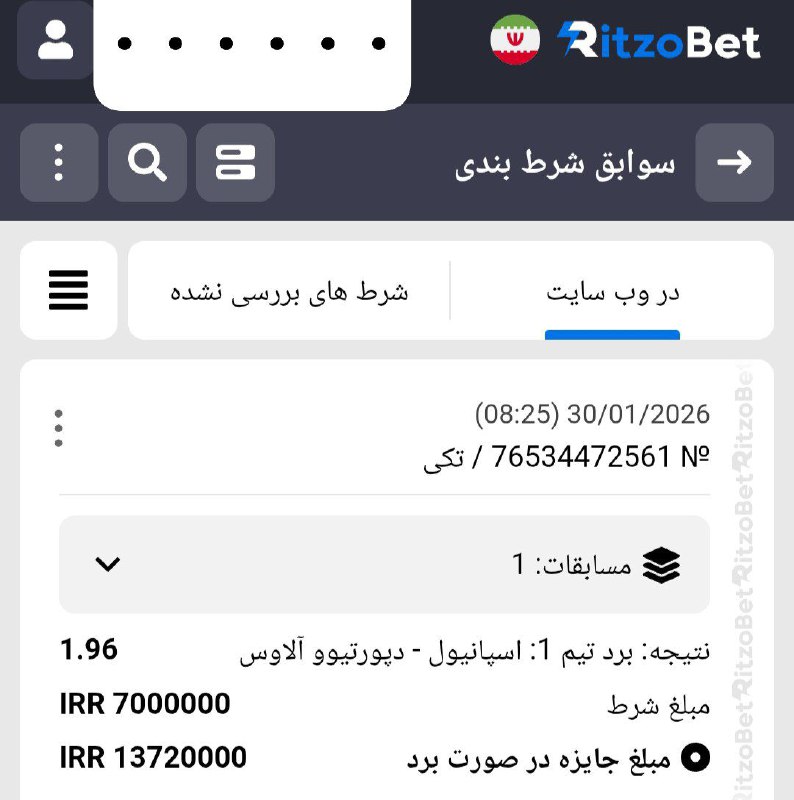 در سایت #ریتزوبت ثبت نام کنید و با اولین واریز تا سقف 10 میلیون تومان بونوس بگیرید 🔥🚀