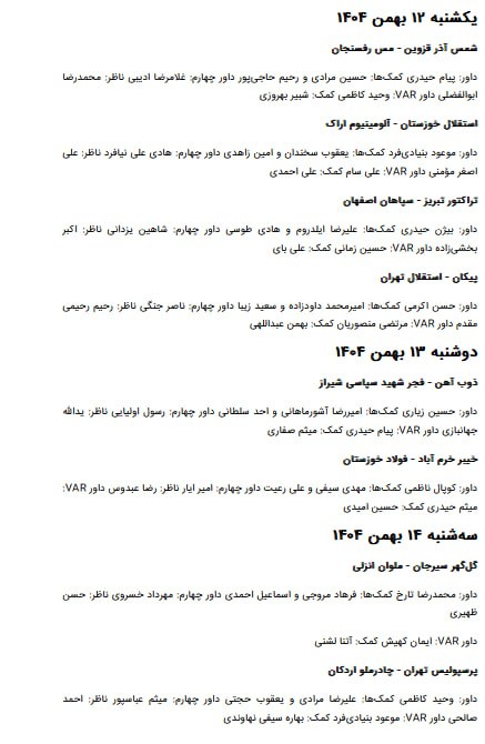 اعلام اسامی داوران هفته نوزدهم لیگ برتر