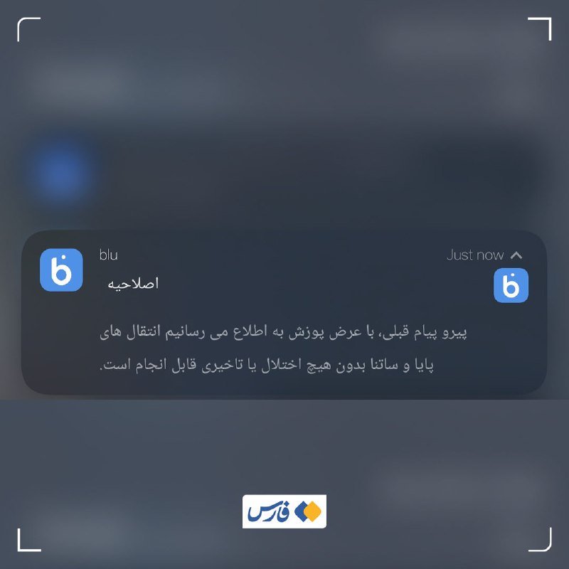 🔹در پی ارسال پیامی از سوی سرویس اینترنتی بانک سامان که از تأخیر ۷۲ ساعته در انجام تراکنشهای بانکی خبر داده بود، بلوبانک پساز تکذیب این خبر توسط بانک مرکزی در پیامی به مشترکانش بابت این پیام عذرخواهی