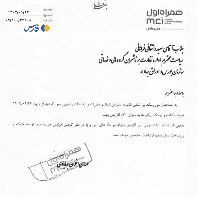 📷 همراه اول تعرفۀ تماس با تلفن همراه و پیامک را ۳۰ درصد افزایش داد.