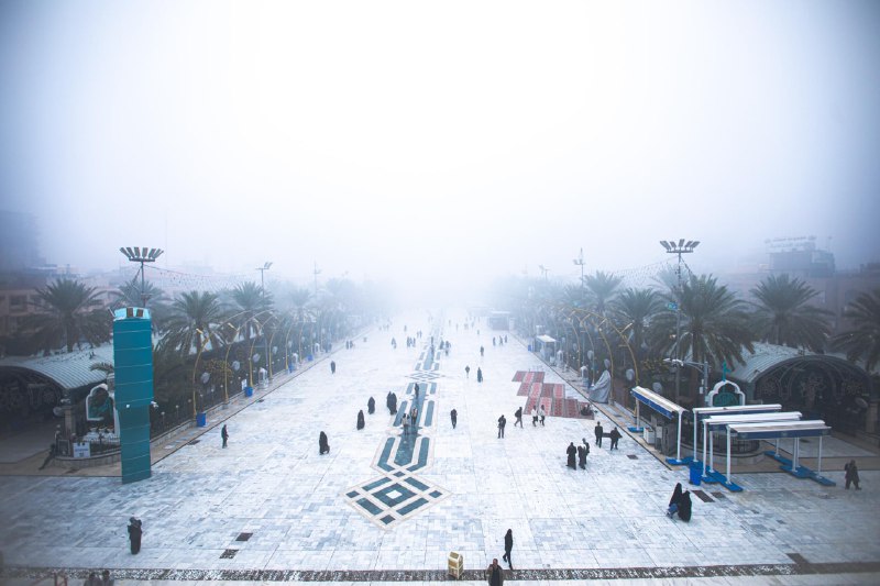 🔹تصاویری از هوای مه‌آلود امروز بین‌الحرمین در کربلای معلی