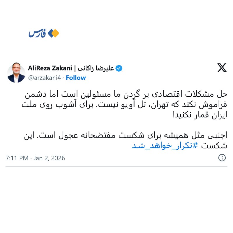🖼 واکنش زاکانی به ترامپ: برای آشوب روی ملت ایران قمار نکنید!