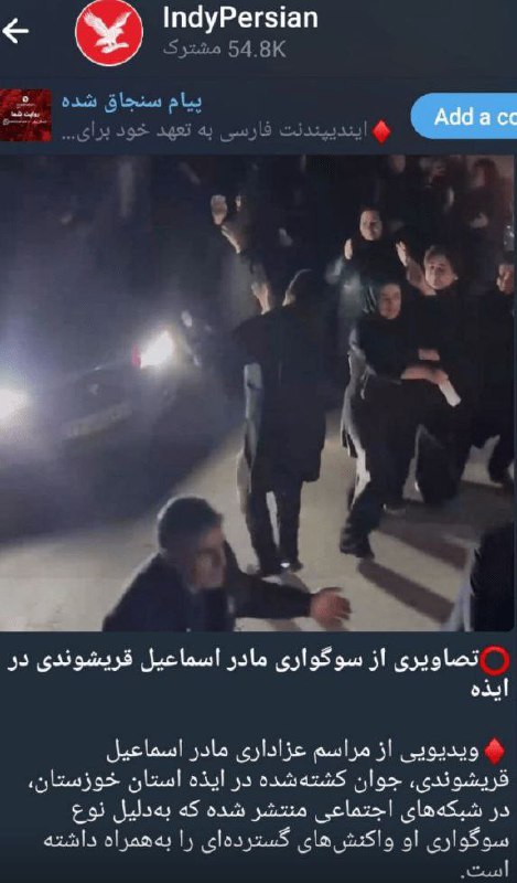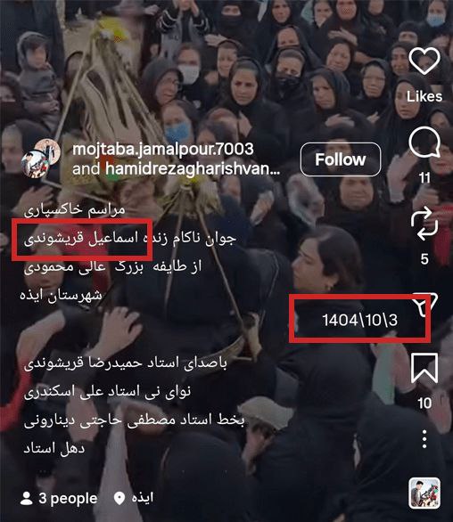 🔹 برخی رسانههای معاند روز گذشته با انتشار فیلمی از مراسم تدفین جوانی به نام «اسماعیل قریشوندی»، مدعی شدند این فرد در جریان اعتراضات ایذه جان باخته است؛ ادعایی که بررسیها نشان میدهد با واقعیت مطابقت ندارد.