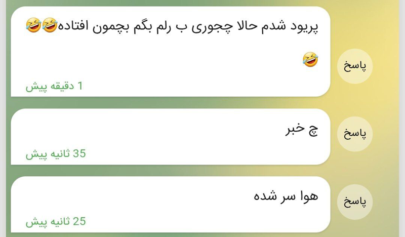 1:نه والا، اخی چرا باید پنجشنبه کلاس جبرانی برم، ع درد دارم میمیرم😭😭