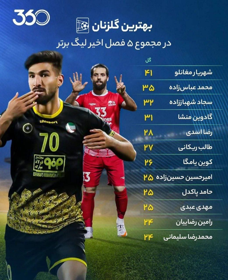 بهترین گلزنان و بهترین پاسور های لیگ ایران در پنج فصل اخیر