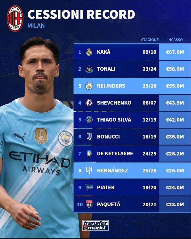بیشترین درامد از فروش بازیکن در ۱۰ سال اخیر: