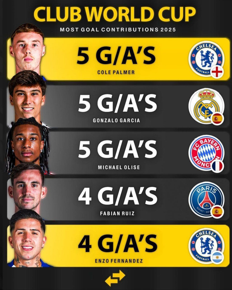👀 تا پیش از فینال جام جهانی باشگاهها، پالمر تنها روی ۲ گل چلسی مشارکت داشت اما در فینال با ثبت ۲ گل و ۱ پاس گل،