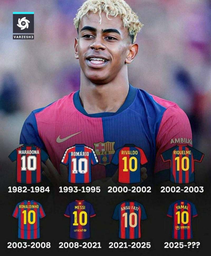‼️رونالدینیو 5 فصل، مسی 13 فصل و مابقی کمتر از 3 فصل این شماره را به تن کردند. باید دید یامال می‌تواند رکورد فوق ستاره آرژانتینی را بشکند یا نه!